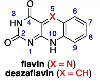 正確性の為に記載しましたが、実際は、デアザフラビンといえば5デアザフラビンのことを意味すると思っていただいて結構です。