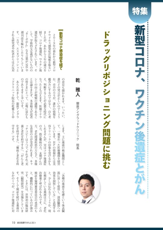 月刊『統合医療でがんに克つ』2024年8月号に院長 乾雅人の特集記事が掲載されました。