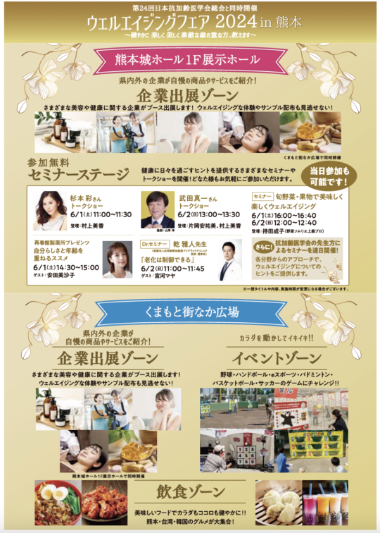 第24回日本抗加齢医学会総会と同時期に開催された、ウェルエイジングフェア@熊本で、市民セミナーに登壇しました。