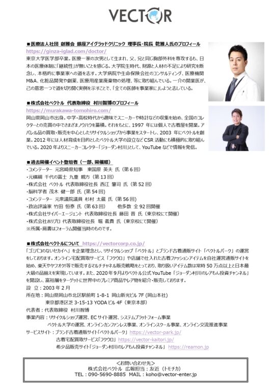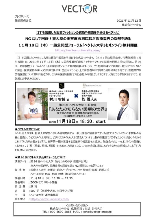 第96回「ベクトル大学」に院長 乾雅人がスピーカーとして登壇しました。